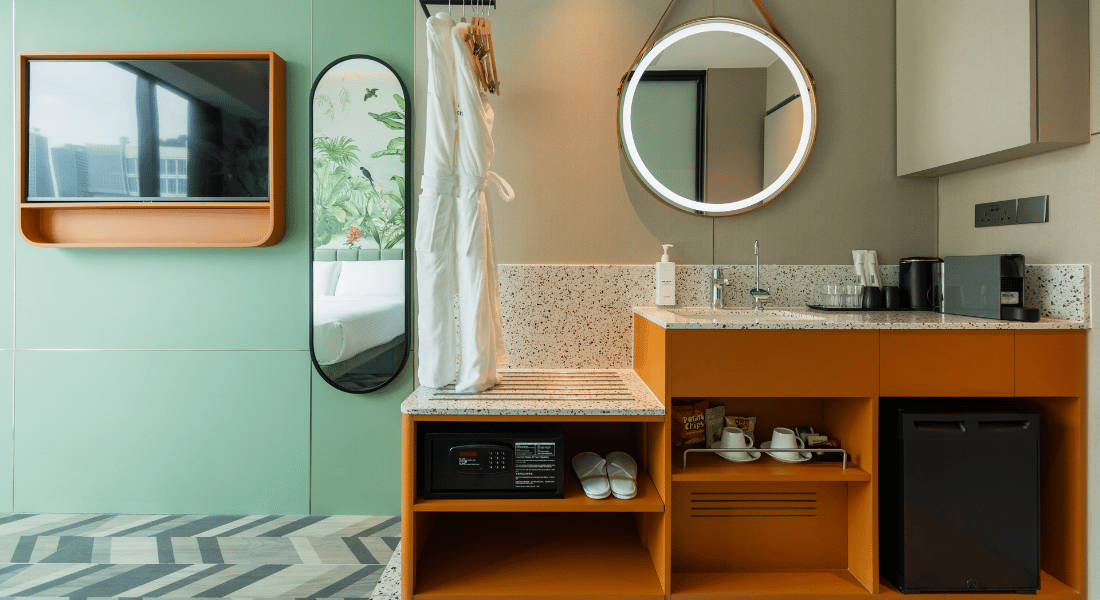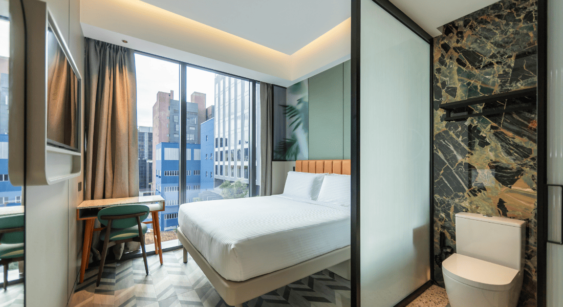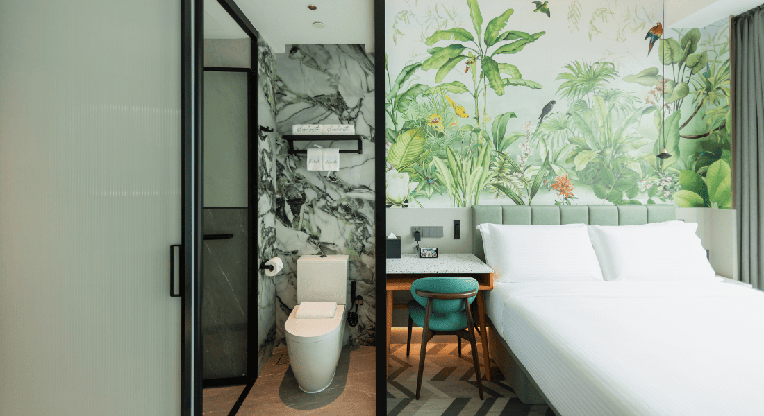 Unwind in a Deluxe Room with 1 Double Bed at Hotel Waterloo Singapore – Handwritten Collection, featuring a cozy layout and a comfortable double bed. Enjoy premium touches including a Nespresso machine, local snacks & drinks, plush bathrobes, and smart in-room features such as voice-controlled lighting, air-conditioning, and Smart TV. Mobile check-in and keyless access ensure a seamless stay, while nature-inspired interiors and thoughtful design create a relaxing retreat in the heart of Bras Basah-Bugis.
